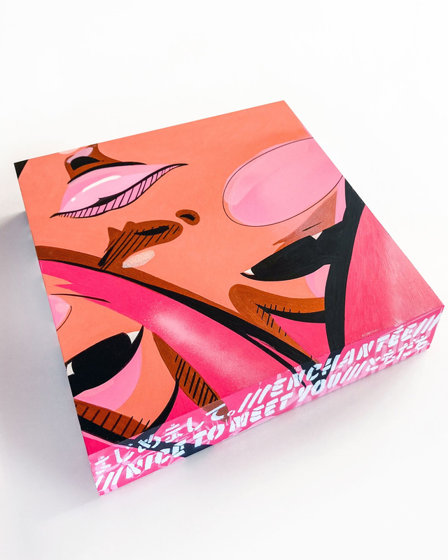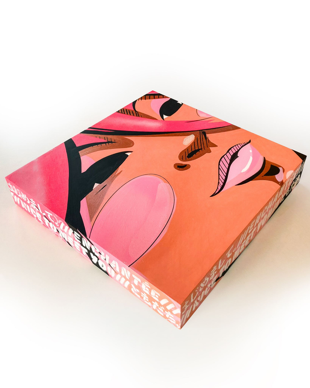 Acrylique • Pochoir sur tamis • Spray paint + différents effets de vernis.