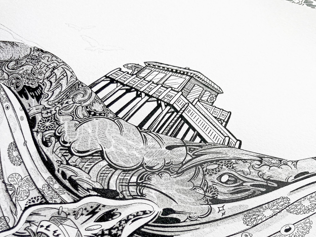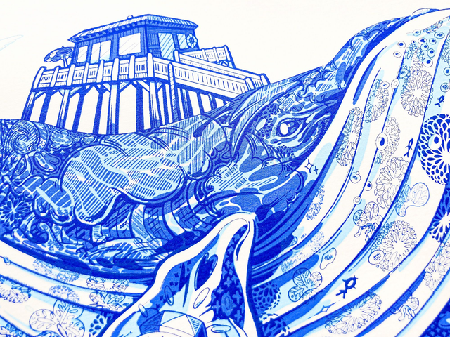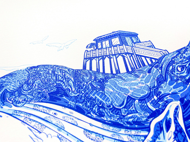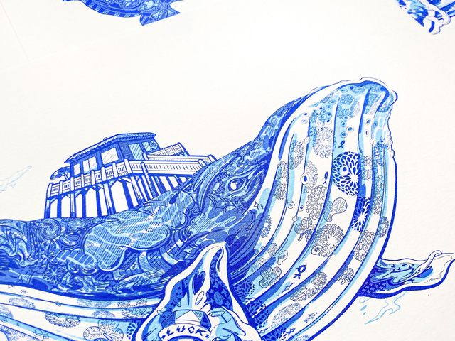 Sérigraphie avec 2 versions colorées. édition Bleue de 110 et édition métallique de 64. Toutes les sérigraphies sont envoyées protégées par rouleau postale . Livraison offerte en France et dans toute l'Europe.